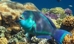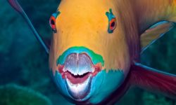 Parrotfish ( Scaridae ) are colorful marine species that inhabit shallow tropical and subtropical oceans around the world. They are a favorite among divers and underwater photographers, due to their shiny, diverse colors. Also a favorite due to their meat, so their low numbers prompted an international campaign to ban its capture and consumption for several years.